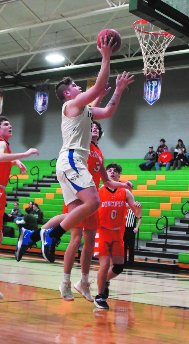 Eagles Set For Cougar Classic… Eagle guard Aiden Morarity puts up a shot against Concordia during the consolation game of the 2022-23 F&C Bank Cougar Classic Tournament on Jan. 28, 2023. The Holden boys basketball team defeated Concordia in last year’s consolation game. The Holden boys basketball team enters this year’s Cougar Classic as the No. 8 seed. The Eagles face off against No. 1 seed Crest Ridge in boys first-round play on Tuesday, Jan. 23. Photo By Steve Edwards