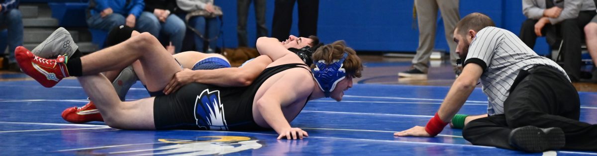Eagle wrestlers Bobby Bowlin at 138 pounds, Kaleb Catron at 144 pounds, and Noah Greissl at 150 pounds followed Thieman’s win with wins by forfeit.