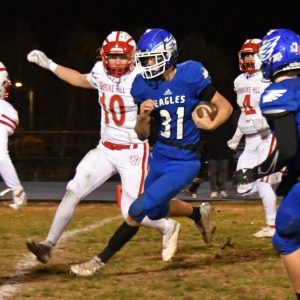 The Holden football team captured the Class 2, District 6 Tournament championship trophy by defeating the visiting Pembroke Hill Raiders by the final score of 32-25 on Friday, Nov. 11. In a back-and-forth contest which the Raiders led at halftime, Holden closed out the trophy win on a 51-yard touchdown run by Eagle receiver CJ…